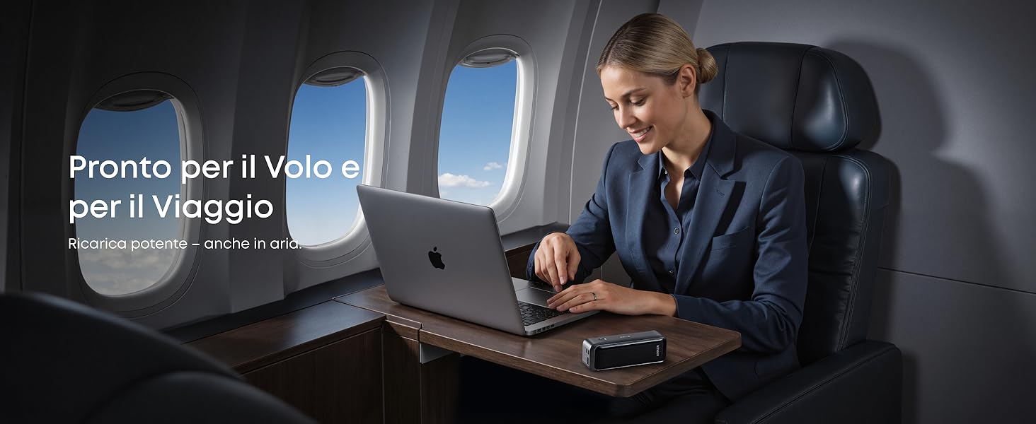 - Potenza da 20 000 mAh pronta al volo: Porta sempre con te 20 100 mAh (72,36 Wh) di energia portatile approvata TSA, sufficienti per ricaricare un iPhone 16 Pro fino a 3,6 volte.