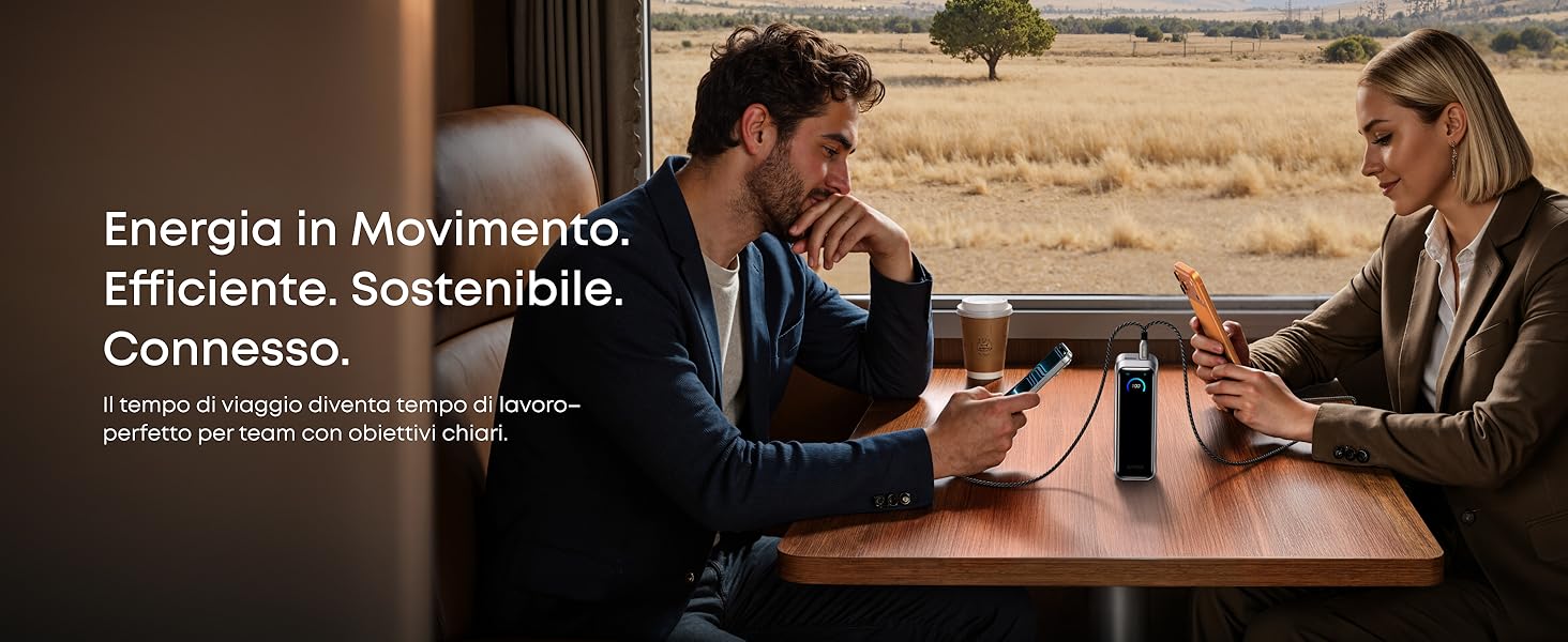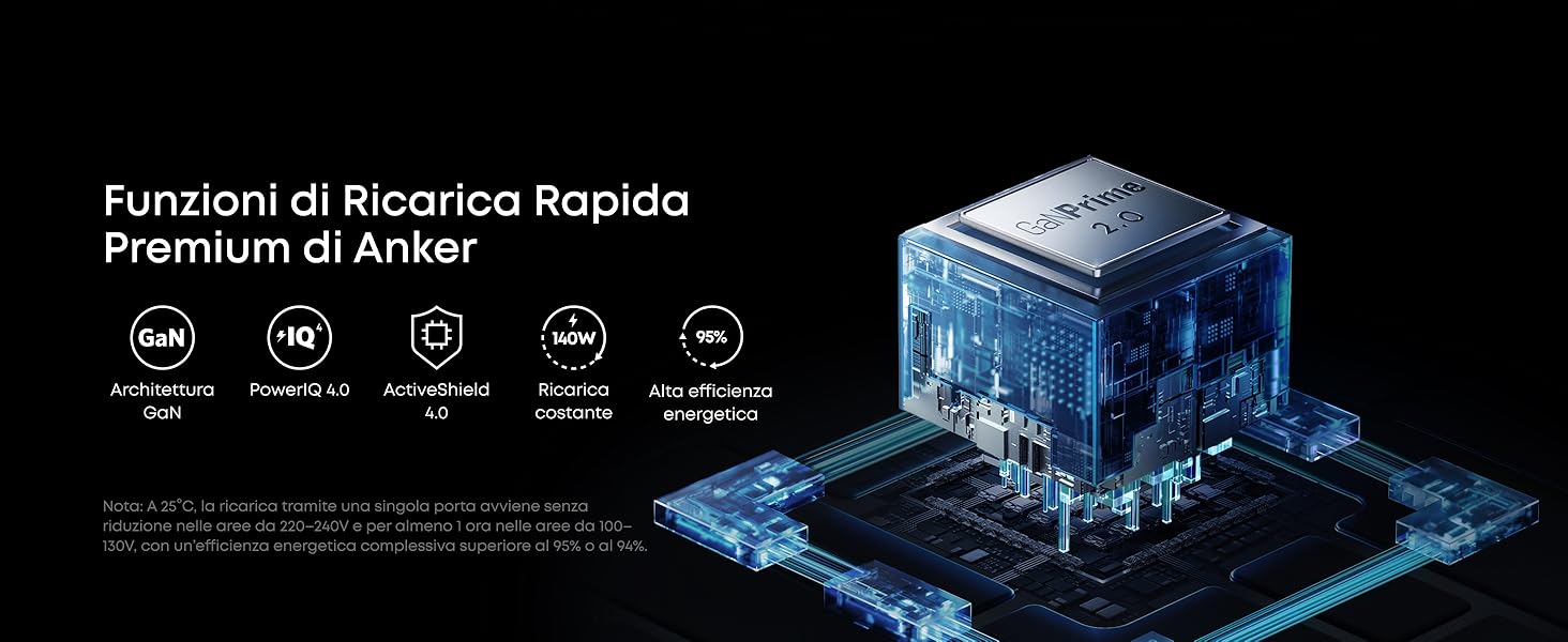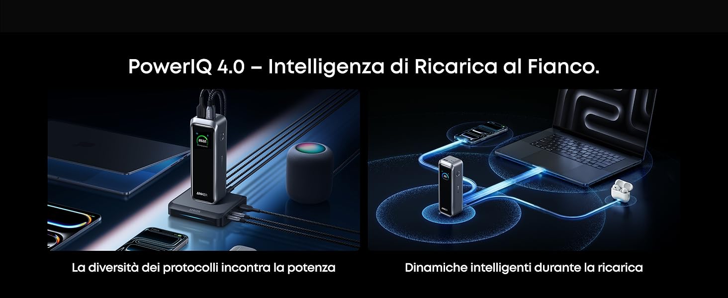 - Ricarica rapida massima da 140 W: Fornisce fino a 140 W di potenza ad alta velocità, per ricaricare rapidamente i laptop quando collegato con un cavo USB‑C 5 A. Ricarica un MacBook Pro (M4) fino al 50 % in 28 minuti.
