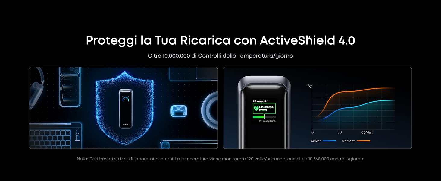 Dati basati su test interni di laboratorio Anker. Le prestazioni effettive possono variare in base alle condizioni d’uso specifiche.