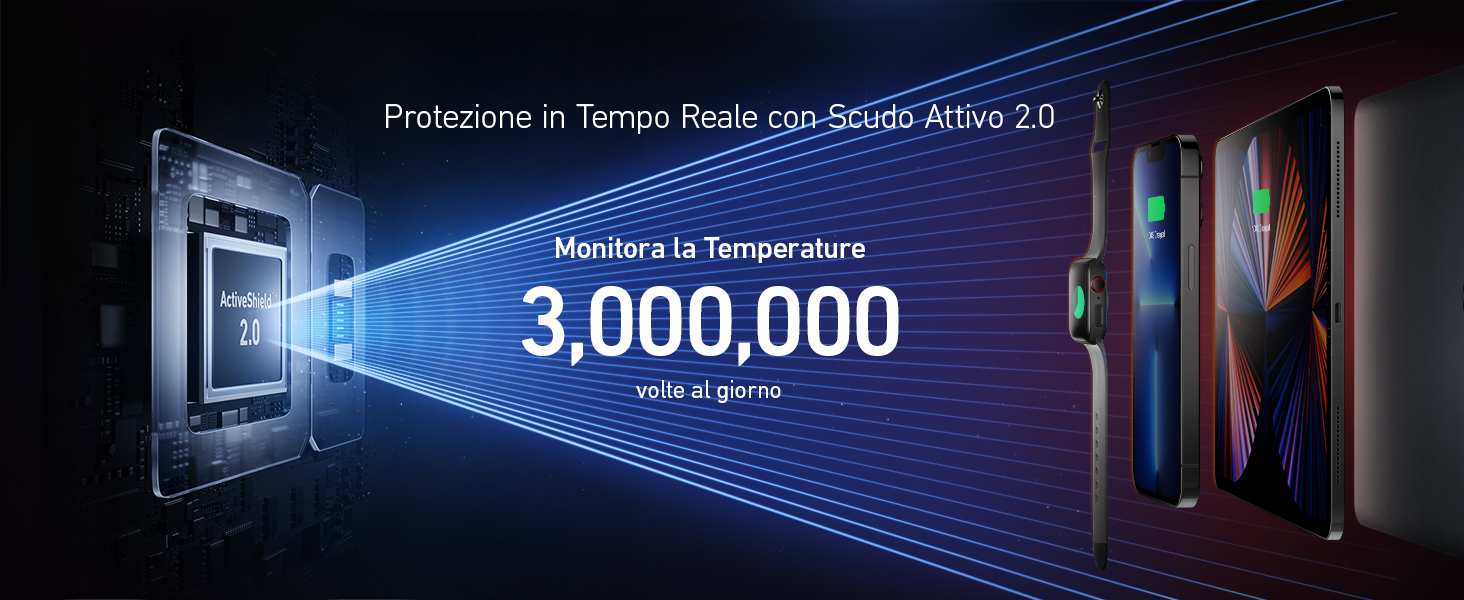 - Elevata capacità e lunga durata: una capacità della batteria di 24.000 mAh e una durata due volte maggiore permettono di ricaricare un iPhone 13 per circa 5 volte o un iPad Pro 12,9" 2021 per 1,3 volte.