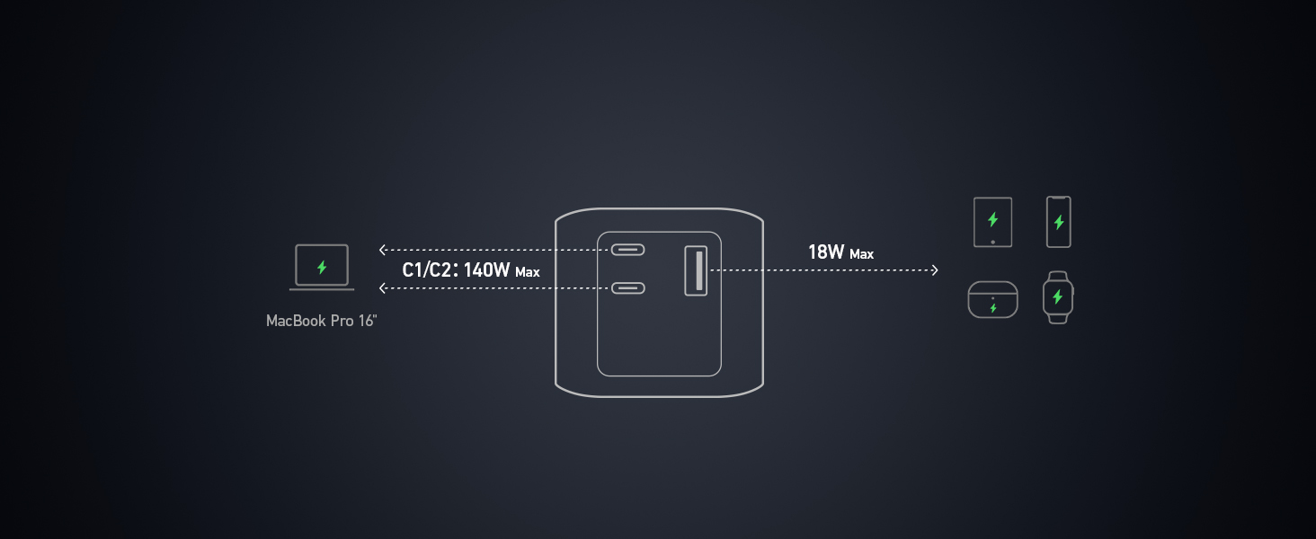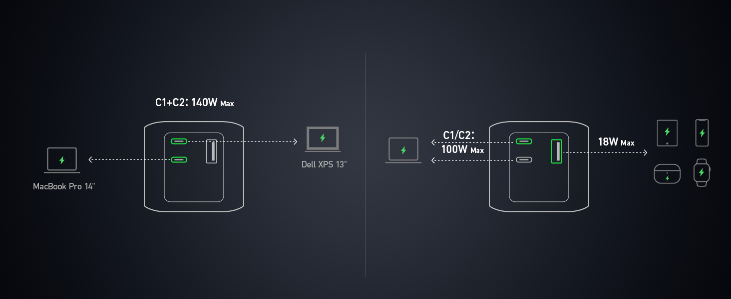 - Caricamento bidirezionale ultra potente: il moderno sistema Power Delivery 3.1 e la tecnologia bidirezionale permettono di ricaricare rapidamente il caricabatterie portatile o effettuare una ricarica ultra potente a 140 W.