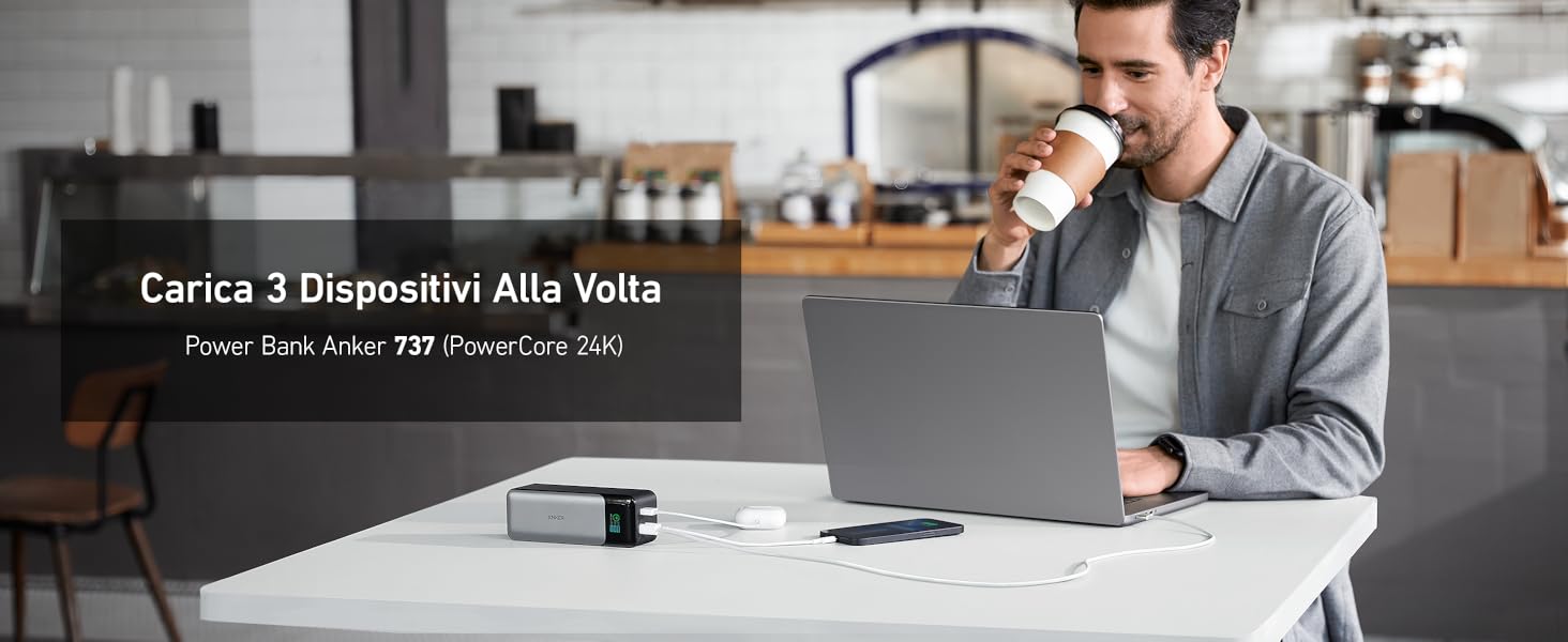 - Cosa offriamo: Anker 737 Power Bank (PowerCore 24K), guida di benvenuto, garanzia di 24 mesi senza stress e un servizio clienti cordiale.