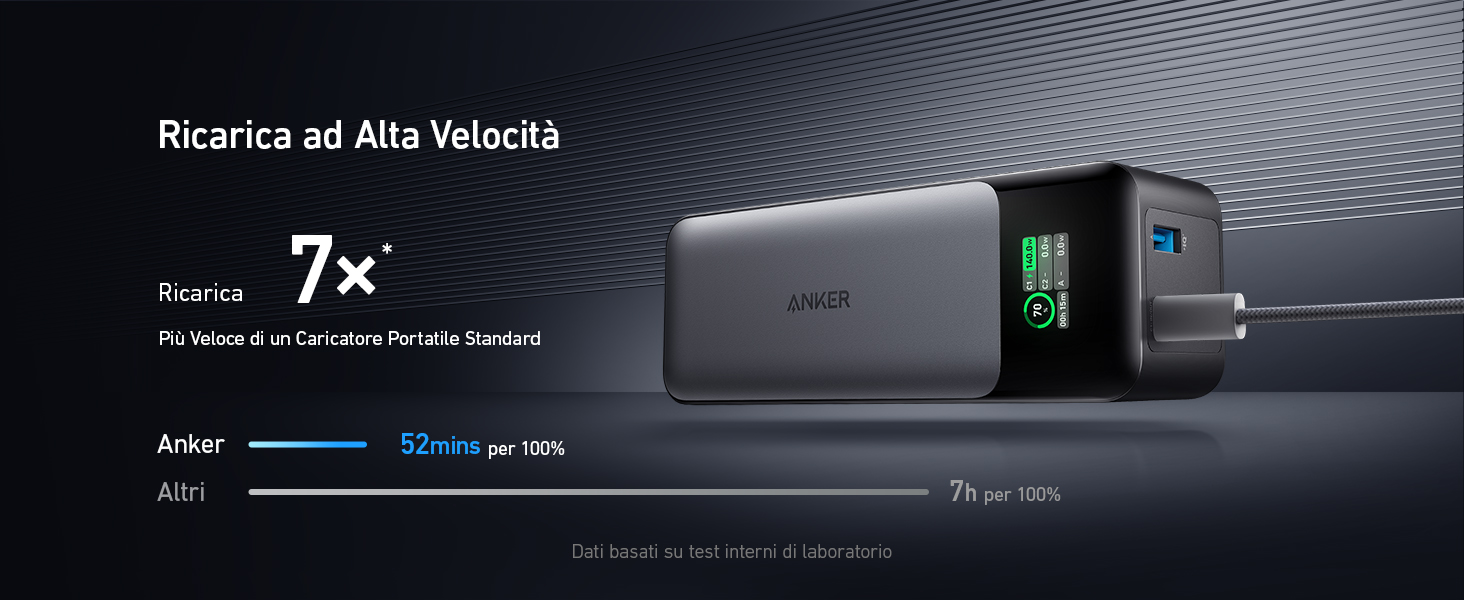 - Con tecnologia GaNPrime: il caricabatterie portatile è dotato del sistema di ricarica con tecnologia GaN più avanzato di Anker, un innovativo design a elementi sovrapposti, PowerIQ 4.0 per una efficienza maggiore e ActiveShield 2.0 per il monitoraggio intelligente della temperatura.