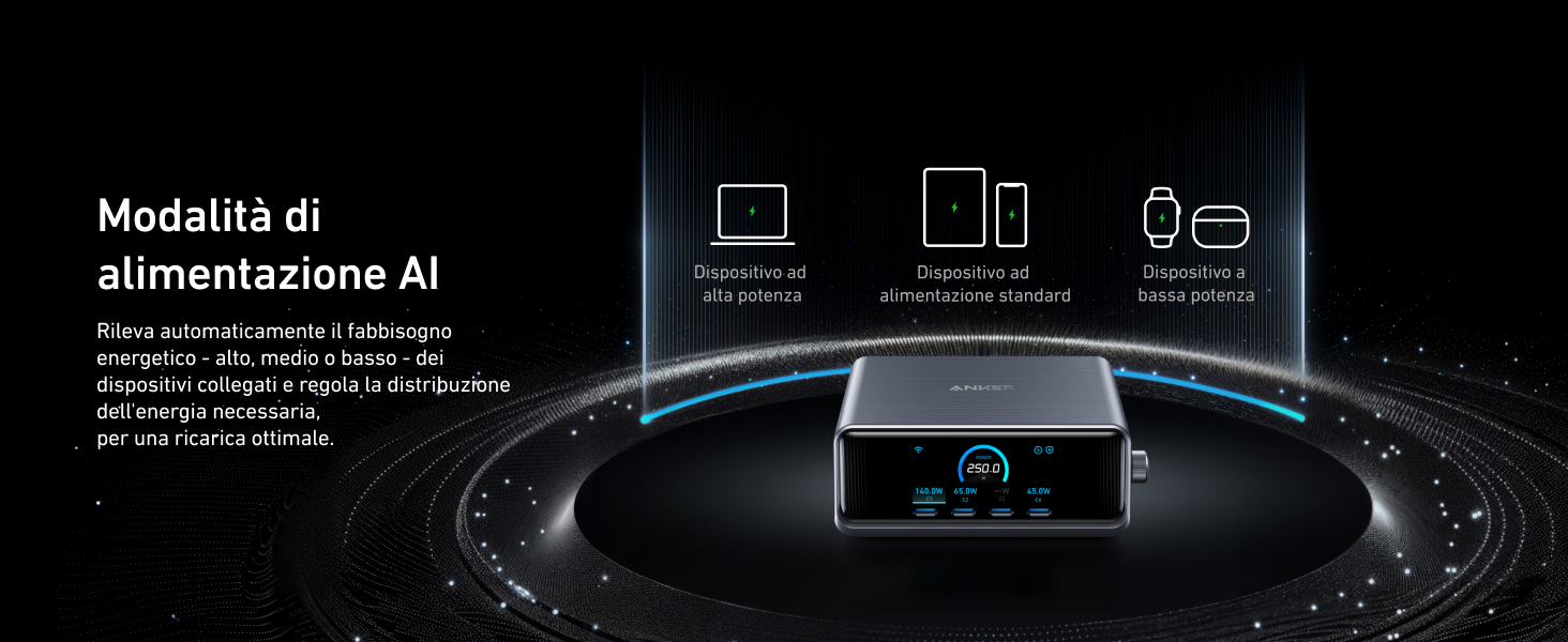Caricabatterie Anker Prime (250 W, 6 porte, GaNPrime)