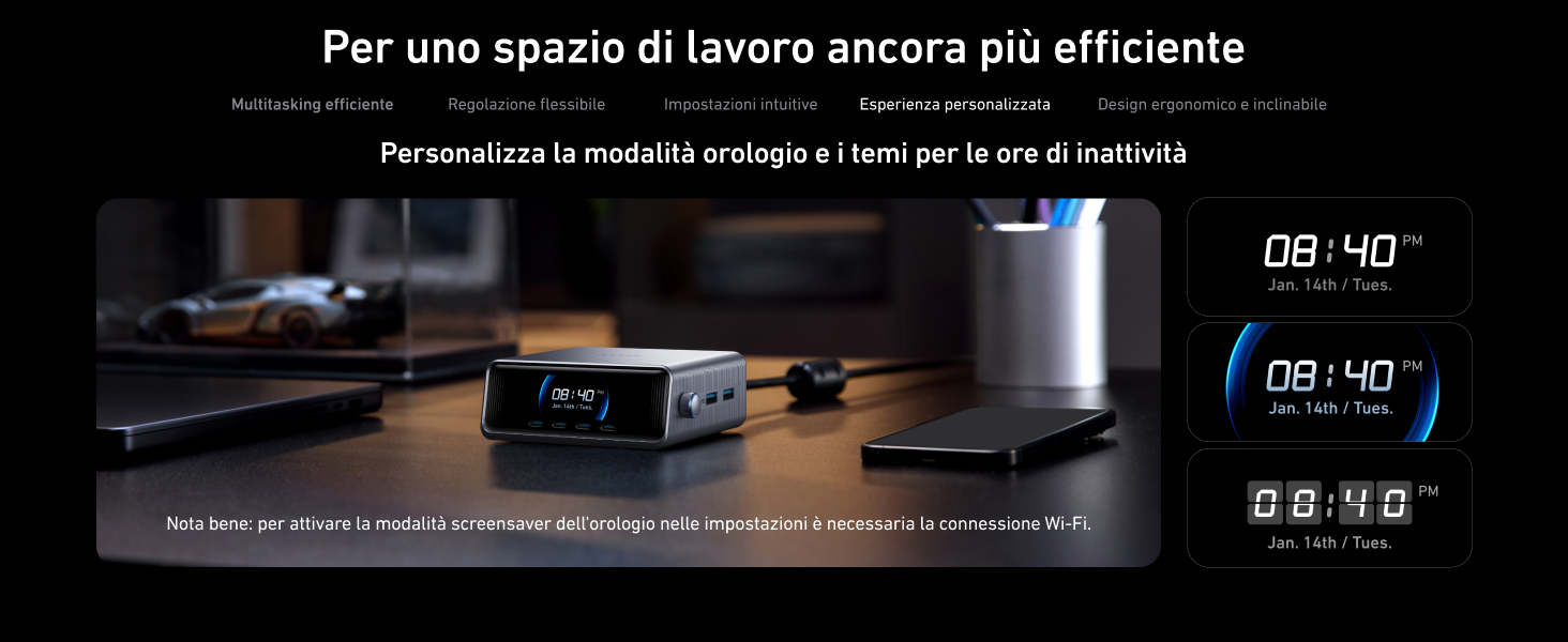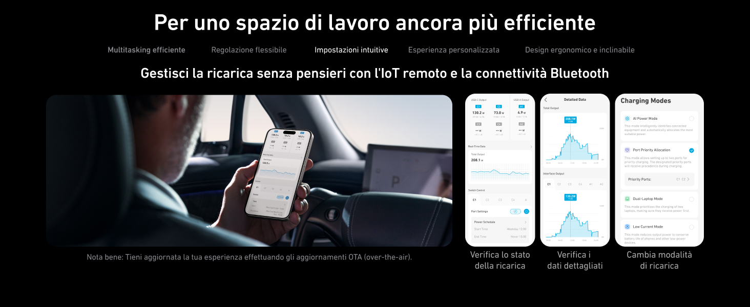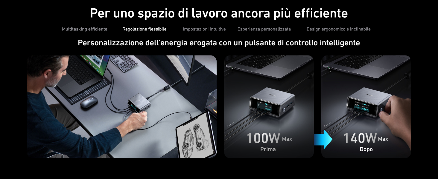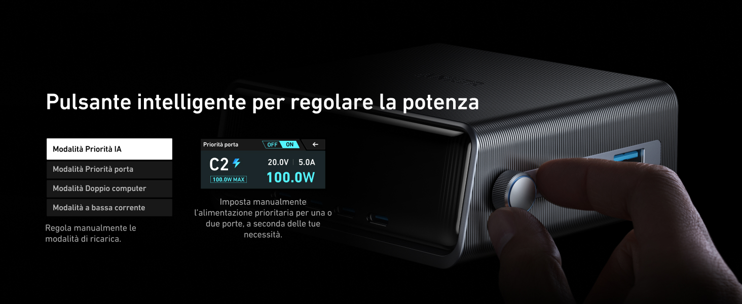 - Modalità di ricarica personalizzate: Il quadrante di controllo intelligente ti permette di regolare l'energia in uscita, per garantire una velocità di ricarica ottimale di ogni dispositivo.