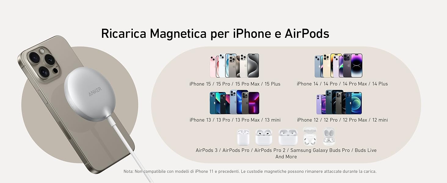 - Cosa Ricevi: Anker MagGo Caricatore Wireless (Pad), guida di benvenuto, garanzia di 24 mesi e il nostro servizio clienti amichevole.