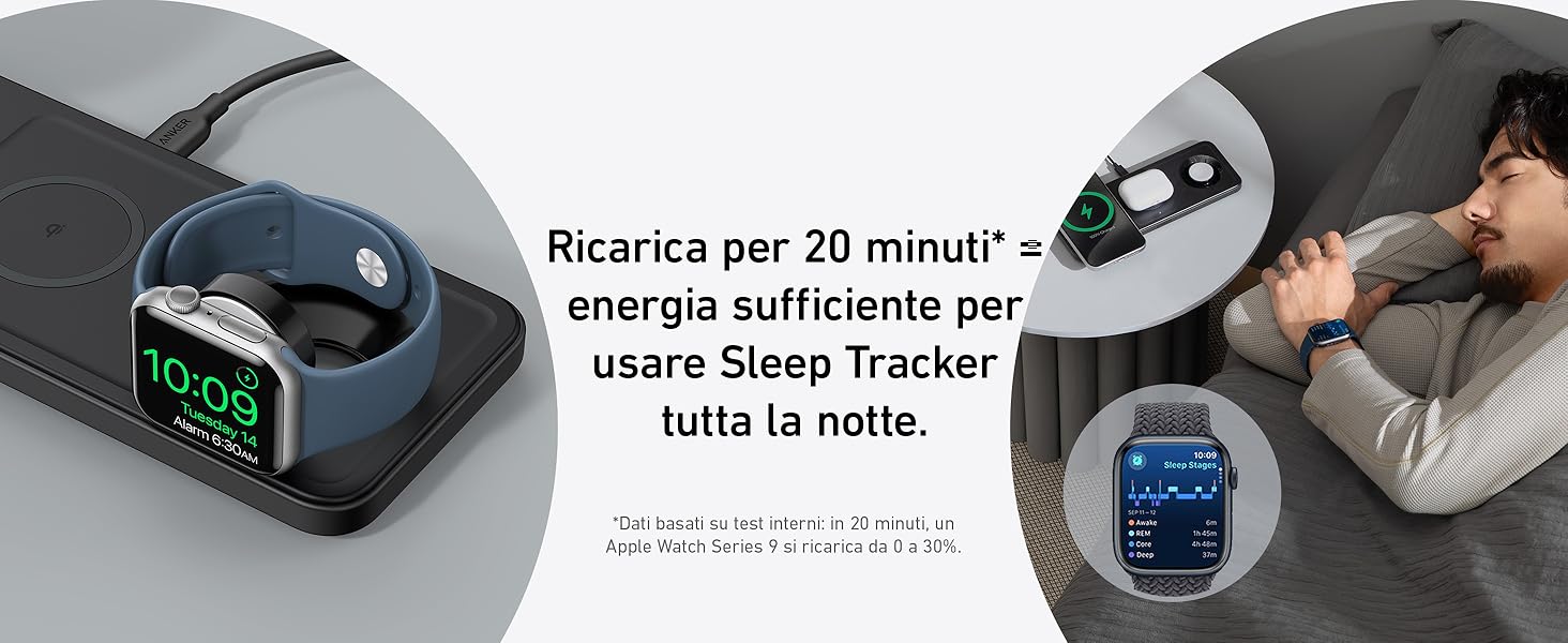 - Caricatore Veloce Certificato Apple: Potenzia il tuo Apple Watch Series 9 al 30% in soli 19 minuti, ideale per una ricarica veloce prima di andare a lettoassicurandoti che sia pronto per monitorare il tuo sonno durante tutta la notte.