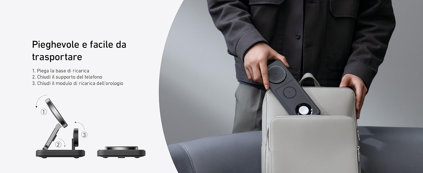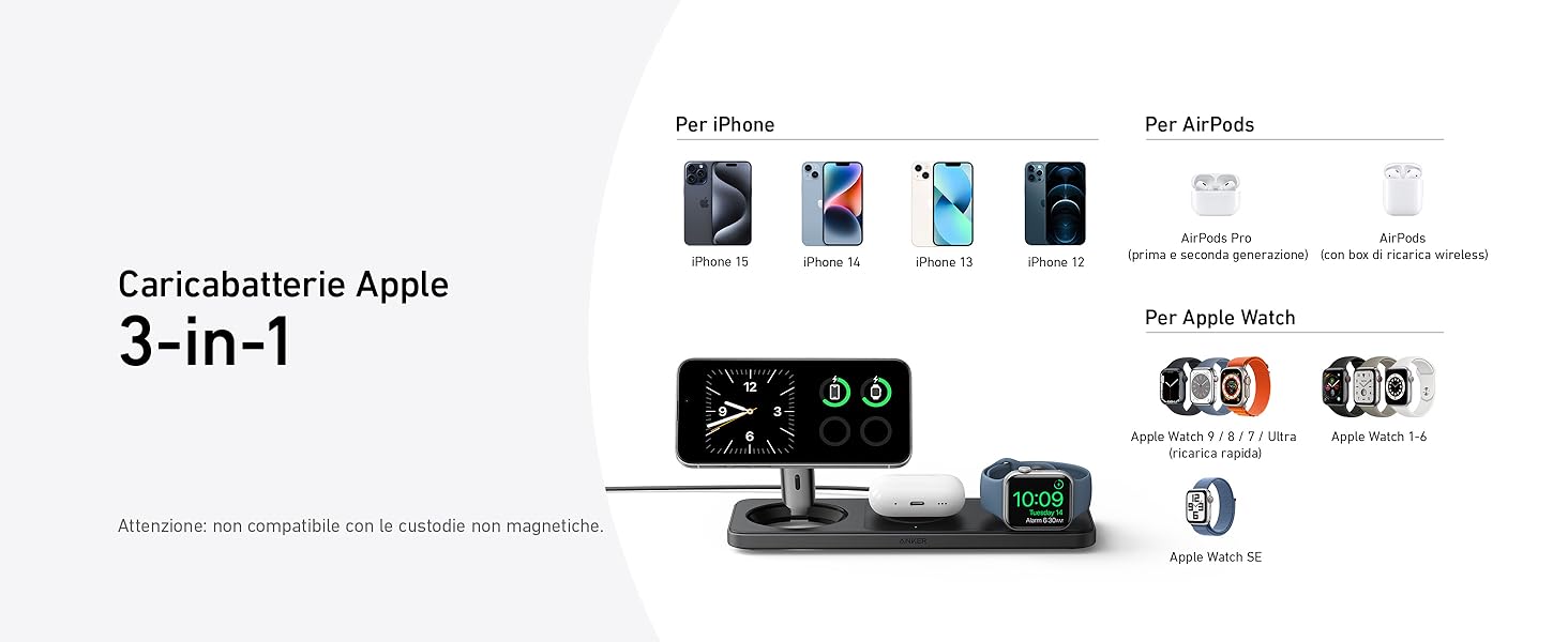 - Ricarica 3-in-1 per Dispositivi Apple: Alimenta senza probleemi il tuo iPhone, AirPods e Apple Watch contemporaneamente con questa soluzione di ricaricacompleta