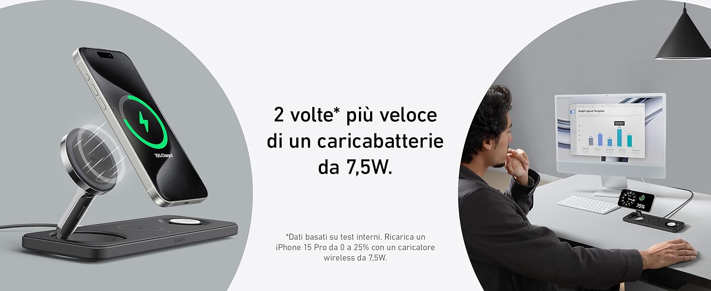 Stazione di ricarica wireless Anker MagGo (pad 3 in 1)
