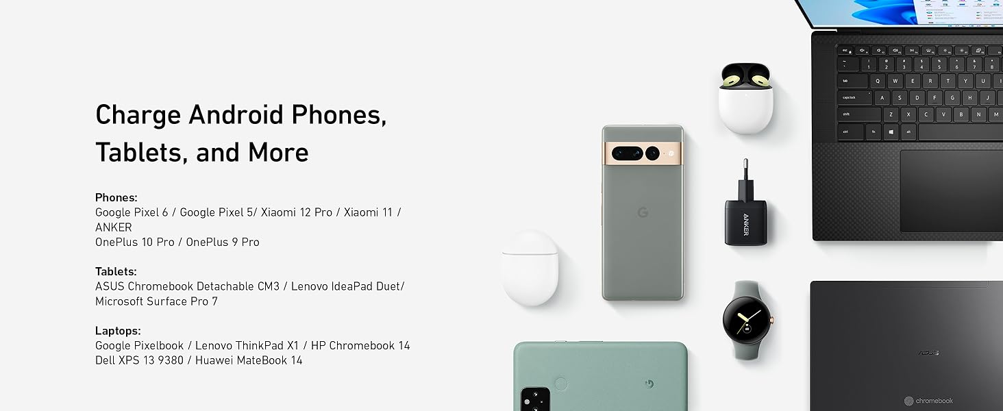 - Cosa offriamo: Caricabatterie Anker 313 (Ace, 45 W), guida di benvenuto, la nostra garanzia di 18 mesi senza preoccupazioni e un servizio clienti cordiale (cavo non incluso).