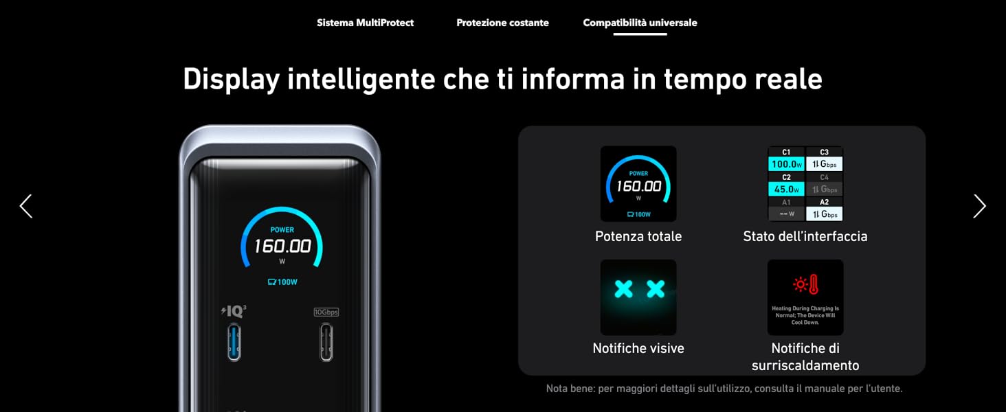 - Smart Display: ricevi feedback visivi immediati sui livelli di potenza, sullo stato della connessione e sugli avvisi importanti, mantenendo i tuoi dispositivi in condizioni ottimali.