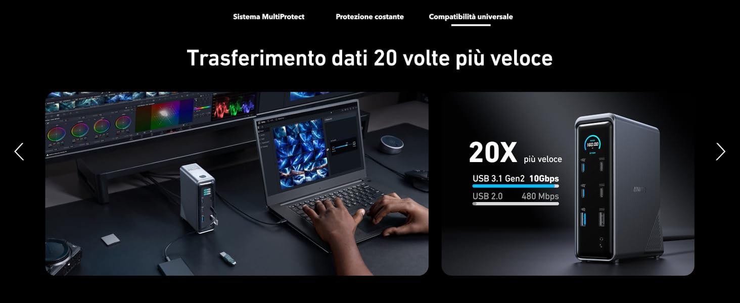 - Gestisci il flusso di dati con 11 porte: gestisci in modo efficiente i dati su più dispositivi con porte versatili che offrono velocità fino a 10 Gbps, completate da opzioni audio e display 4K duali.