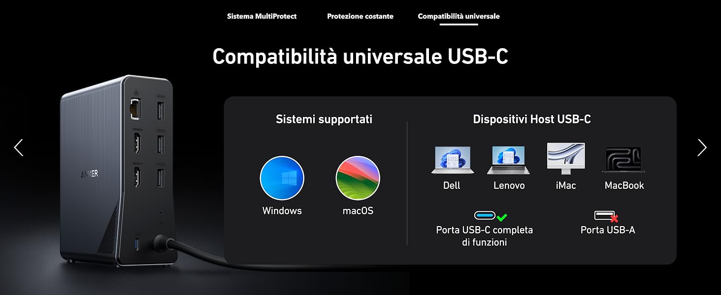 - Connettività 14 in 1: riunisci tutti i tuoi dispositivi con una soluzione 14 in 1, perfetta per ricaricare, trasferire rapidamente i dati e gestire due display.