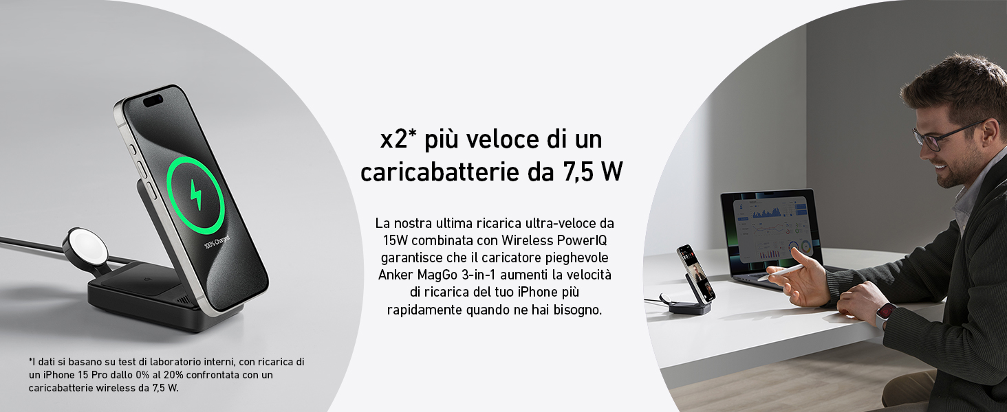 Stazione di ricarica wireless Anker MagGo (pieghevole 3 in 1)