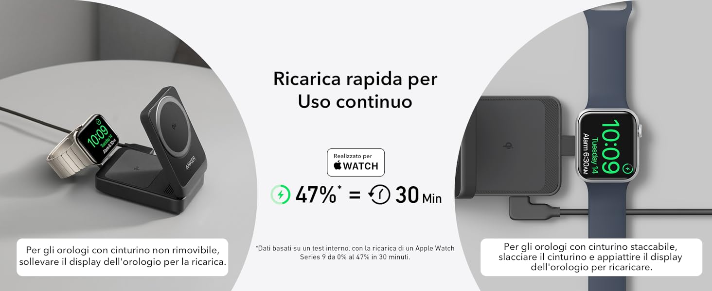 - Risparmia Tempo: Carica rapidamente il tuo Apple Watch Series 9 al 47% in soli 30 minuti grazie alla certificazione MFW, significativamente più veloce dei caricabatterie non certificati.