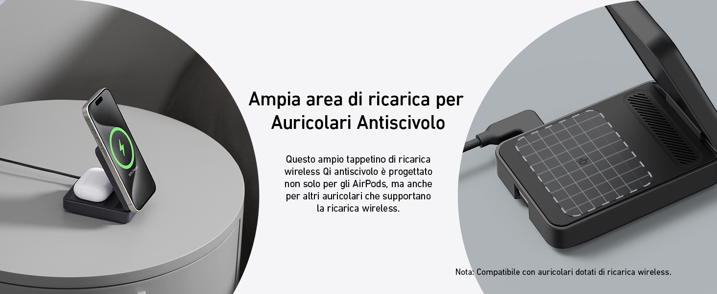 - Ultra Compatto: Con un design ultra-compatto e pieghevole, questa stazione di ricarica wireless ha una dimensione paragonabile a un mazzo di carte quando è piegata e pesa meno di una palla da baseball.