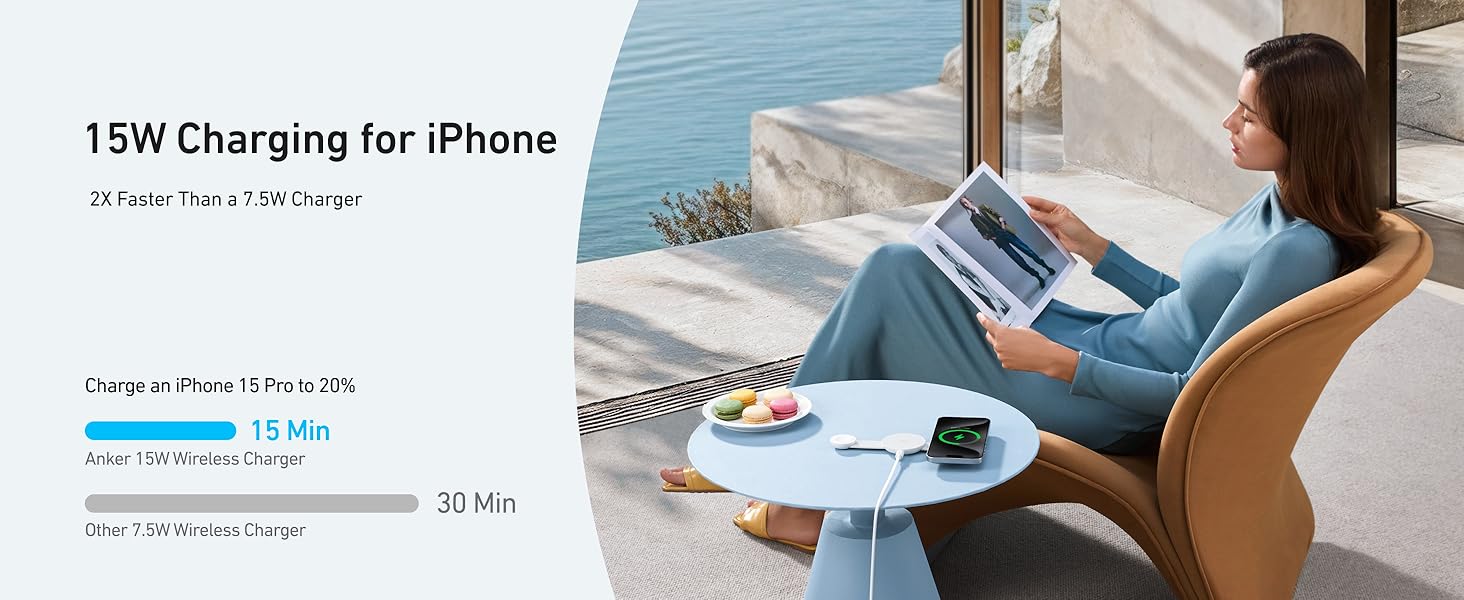 - Ricarica rapida da 15W per iPhone e Apple Watch: Ricarica il tuo iPhone 15 Pro da 0 a 20% in soli 15 minuti, e il tuo Apple Watch 9 da 0 a 30% in 22 minuti con il nostro caricabatterie wireless certificato e compatibile con MagSafe.