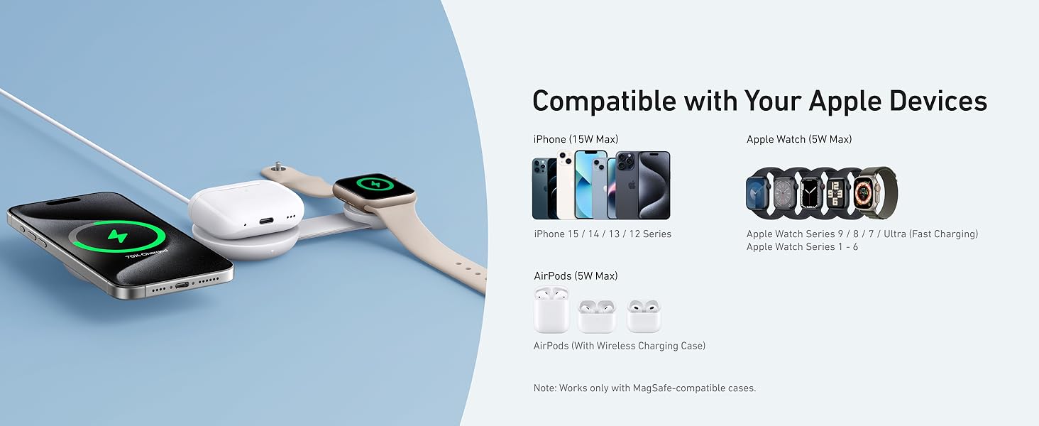 Stazione di ricarica wireless Anker MagGo (3 in 1, pad pieghevole)