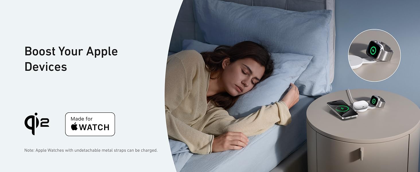 - Ultra-portatile, pratico da trasportare: Porta una ricarica rapida e senza fili ovunque con te, grazie al nostro caricatore Qi2 3-in-1 pieghevole e grande come una palla da baseball.