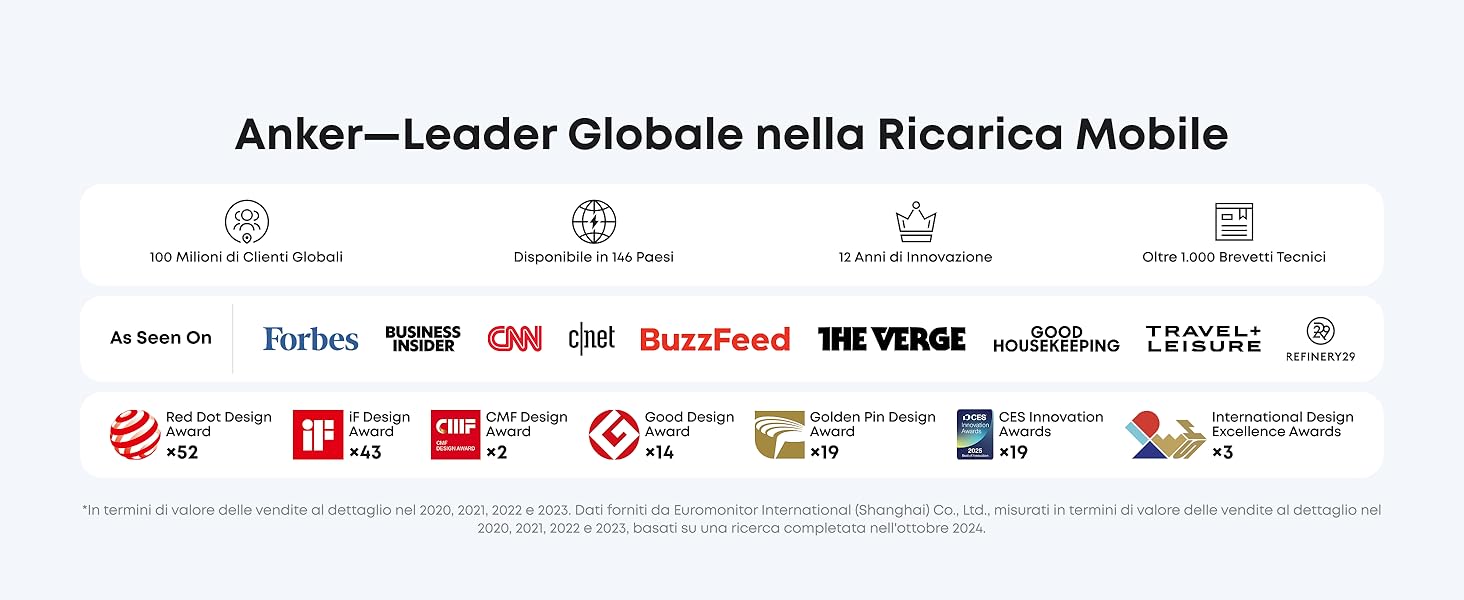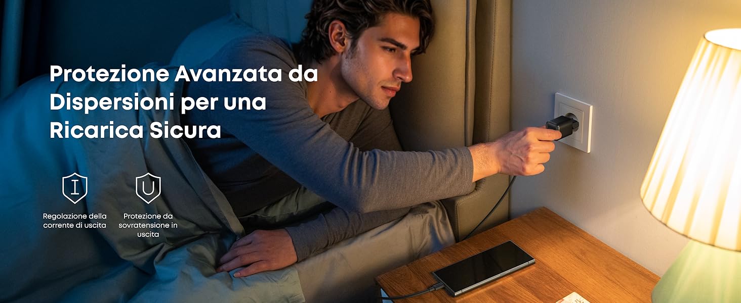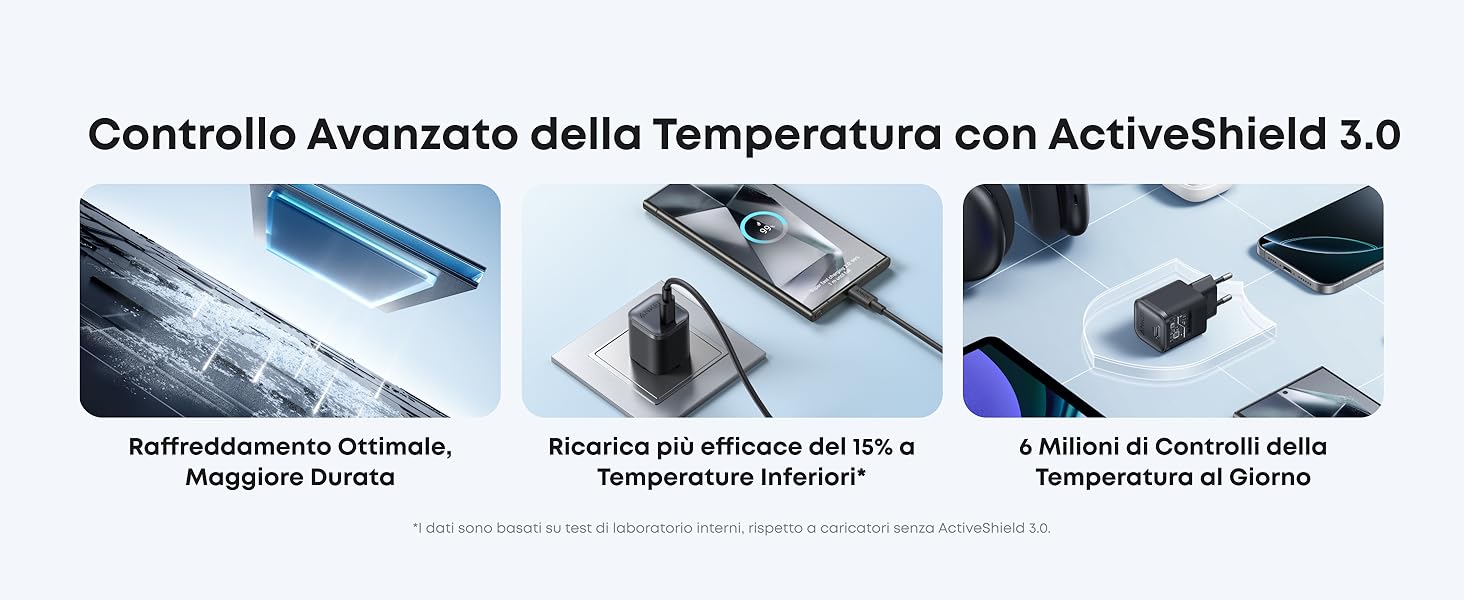 - Progettato per l’efficienza e la sicurezza: Offre una ricarica veloce combinata alla tecnologia ActiveShield per prevenire il surriscaldamento del dispositivo, con funzionalità di sicurezza complete che proteggono dalle dispersioni elettriche.