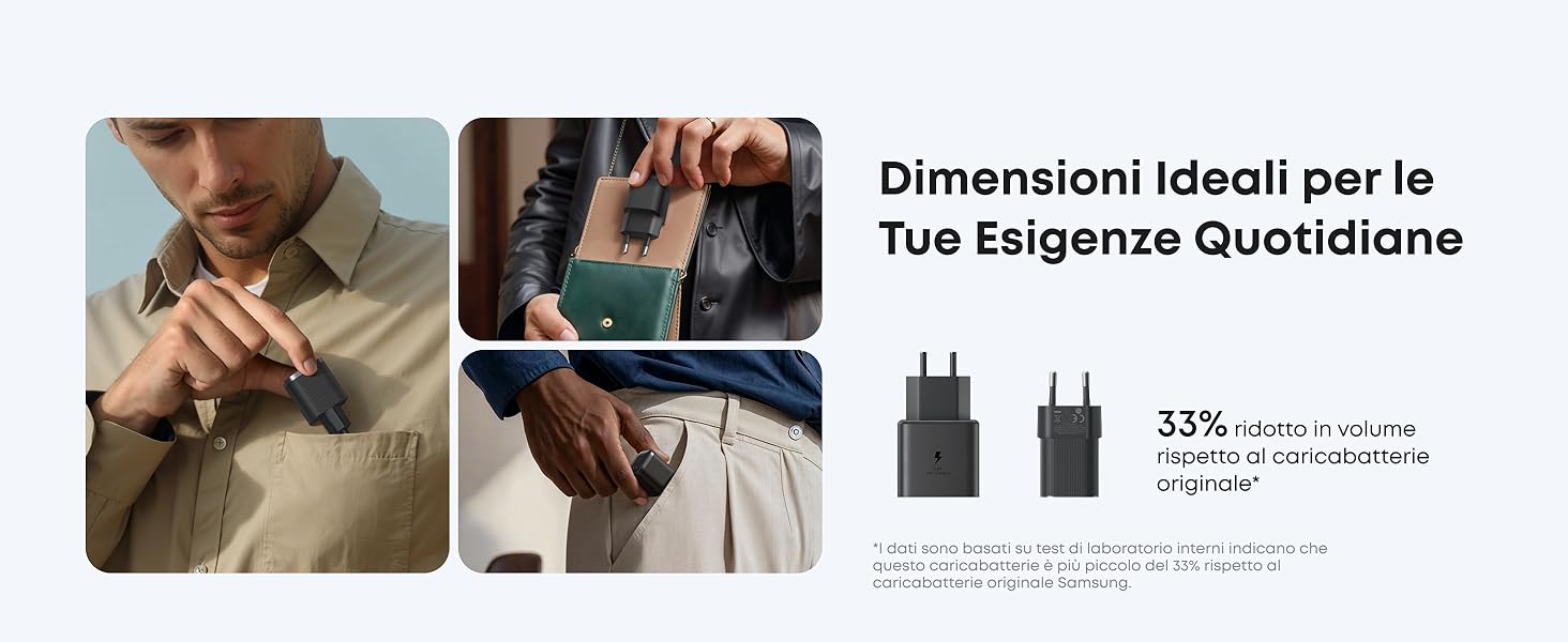 - Ricarica rapida: Scopri la ricarica superveloce per tutti i dispositivi Samsung, grazie all’avanzata tecnologia GaN, perfetta per una ricarica rapida.