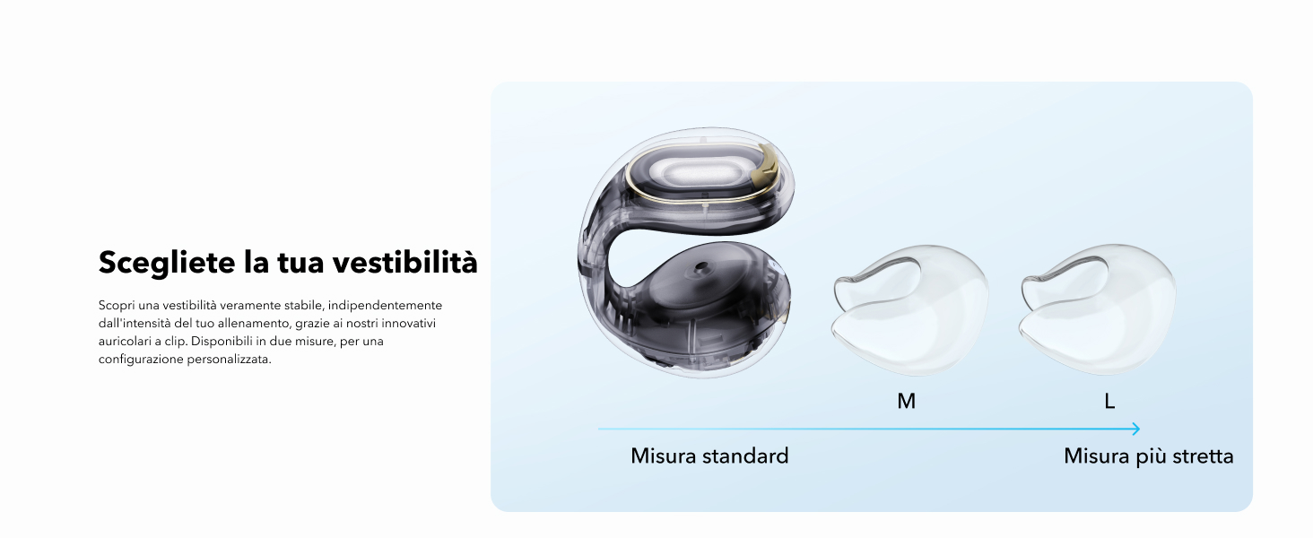 Progettate per una vestibilità sicura: realizzate con un materiale rigido innovativo e indeformabile, le nostre cuffie con clip sono meticolosamente progettate per mantenere la loro forma e garantire una vestibilità sempre sicura, indipendentemente da quanto le utilizzi.