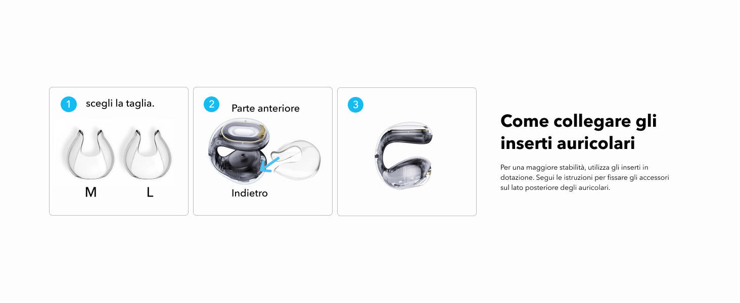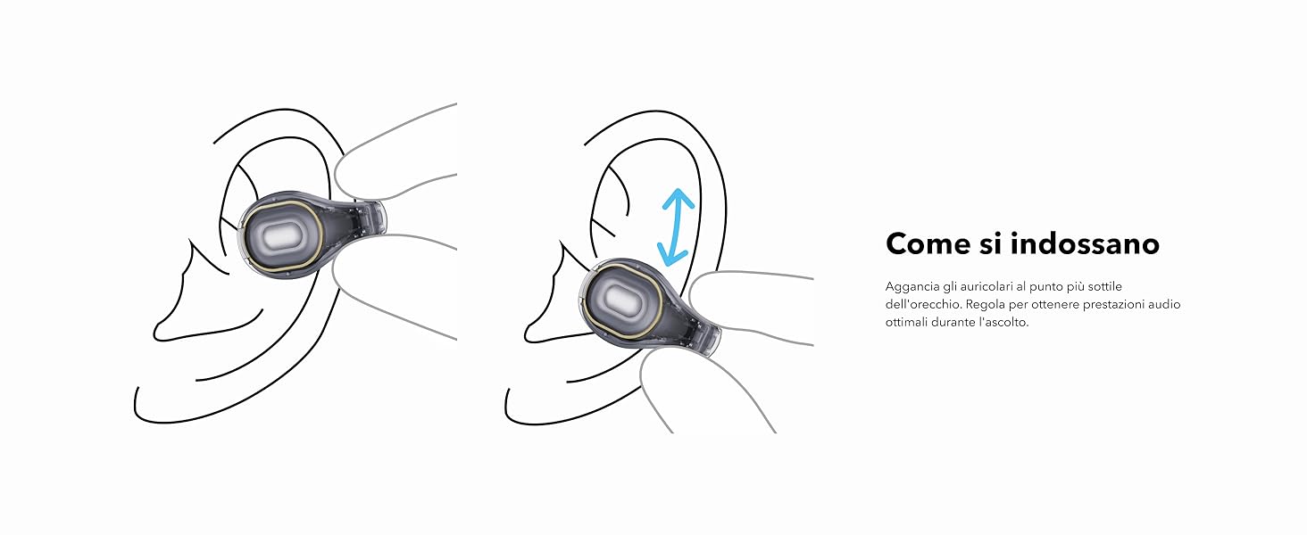 | Design | Auricolari a clip aperti | Gancio per orecchio aperto | Gancio per orecchio aperto | Gancio per orecchio aperto |