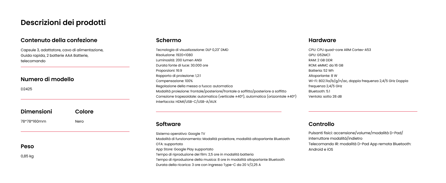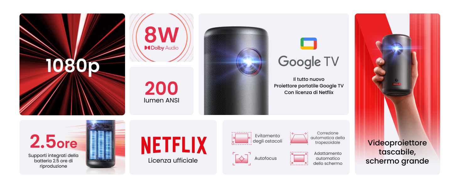 - Schermo super grande, design portatile: Capsule 3 è il proiettore Google TV più piccolo al mondo con Netflix integrato.