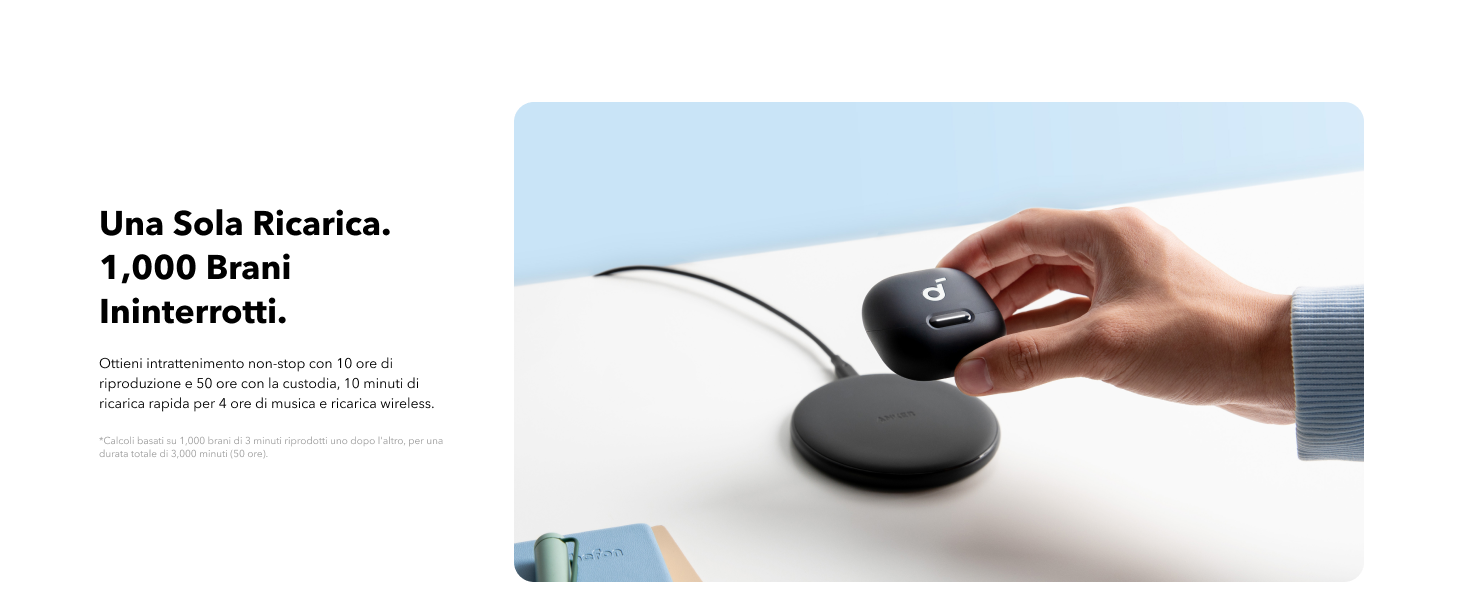 - BATTERIA DA 10/50 ORE SENZA PREOCCUPAZIONI: con una sola carica è possibile usufruire di intrattenimento ininterrotto per la durata di un viaggio attraverso gli Stati Uniti. Porta con te gli auricolari bluetooth Liberty 4 NC nella tua prossima avventura e ascolta 1.000 brani o guarda 30 film uno dopo l'altro senza preoccuparti della batteria.