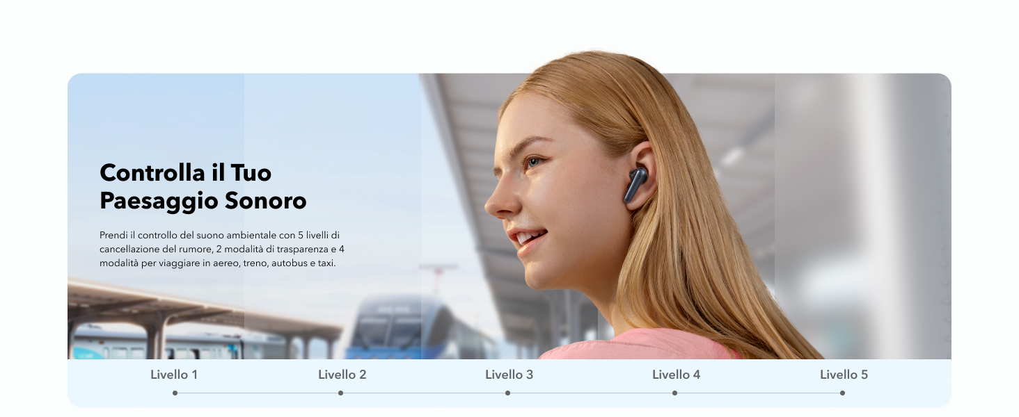 | Active Noise Cancelling | Si adatta alle orecchie e all'ambiente | Si adatta all'ambiente | ANC adattivo | ANC ibrido con multi-modalità | ANC avanzato | - |