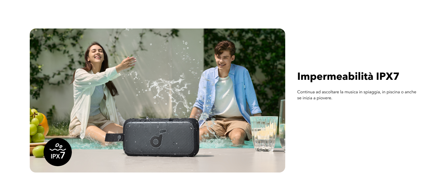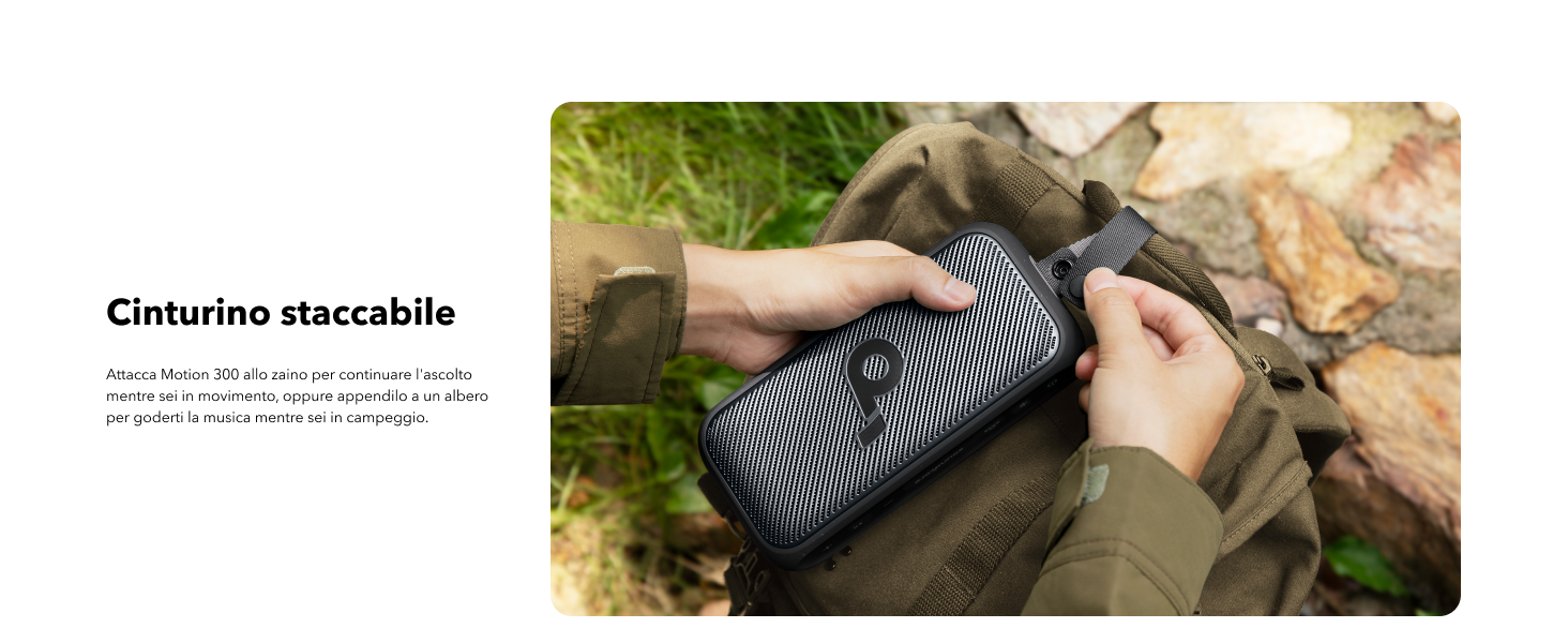 - Adatto all'esterno: l'altoparlante portatile Motion 300 è progettato per resistere agli agenti atmosferici, con grado di impermeabilità IPX7 che ti consente di ascoltare la tua musica ovunque ti portino le tue avventure.
